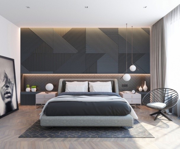 Bagi Anda penggemar kamar tidur minimalis, tema Scandinavian bisa menjadi pilihan yang tepat. Elemen Scandinavian umumnya menampilkan kaca jendela besar, cat putih, tirai putih, penggunaan warna netral serta menggunakan lantai kayu. Sedangkan untuk menambah kesan elegan, Anda bisa menambahkan pajangan dinding. Tentunya dengan tema yang minimalis, Anda harus memilih pajangan dinding yang minimalis pula. Salah satunya dengan memilih interior design berupa kayu dengan ukiran yang sederhana dan warna netral seperti hitam atau cokelat.